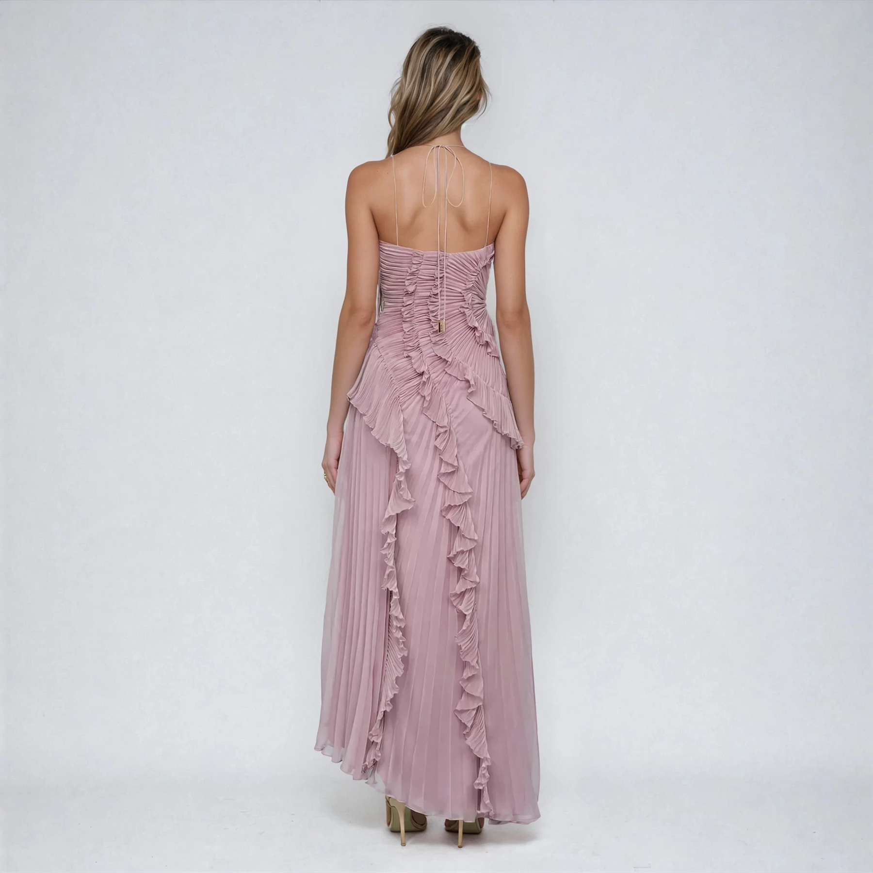 Strahlen Sie durch den Tag (oder Abend) in diesem romantischen fliederfarbenen Plisseekleid. Der luftige Stoff, die dezenten Rßschen und der asymmetrische Schnitt verleihen dem Kleid einen anmutigen Look, der sich mit Ihnen bewegt. Perfekt fßr Hochzeiten, Sommerpartys oder ein elegantes Ausgehoutfit. Tragen Sie es mit Sandalen oder Absätzen - immer stilvoll, immer besonders.
